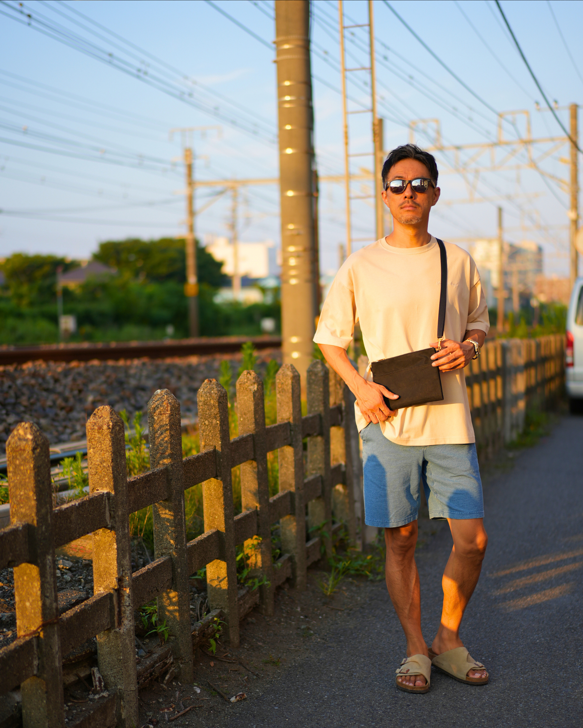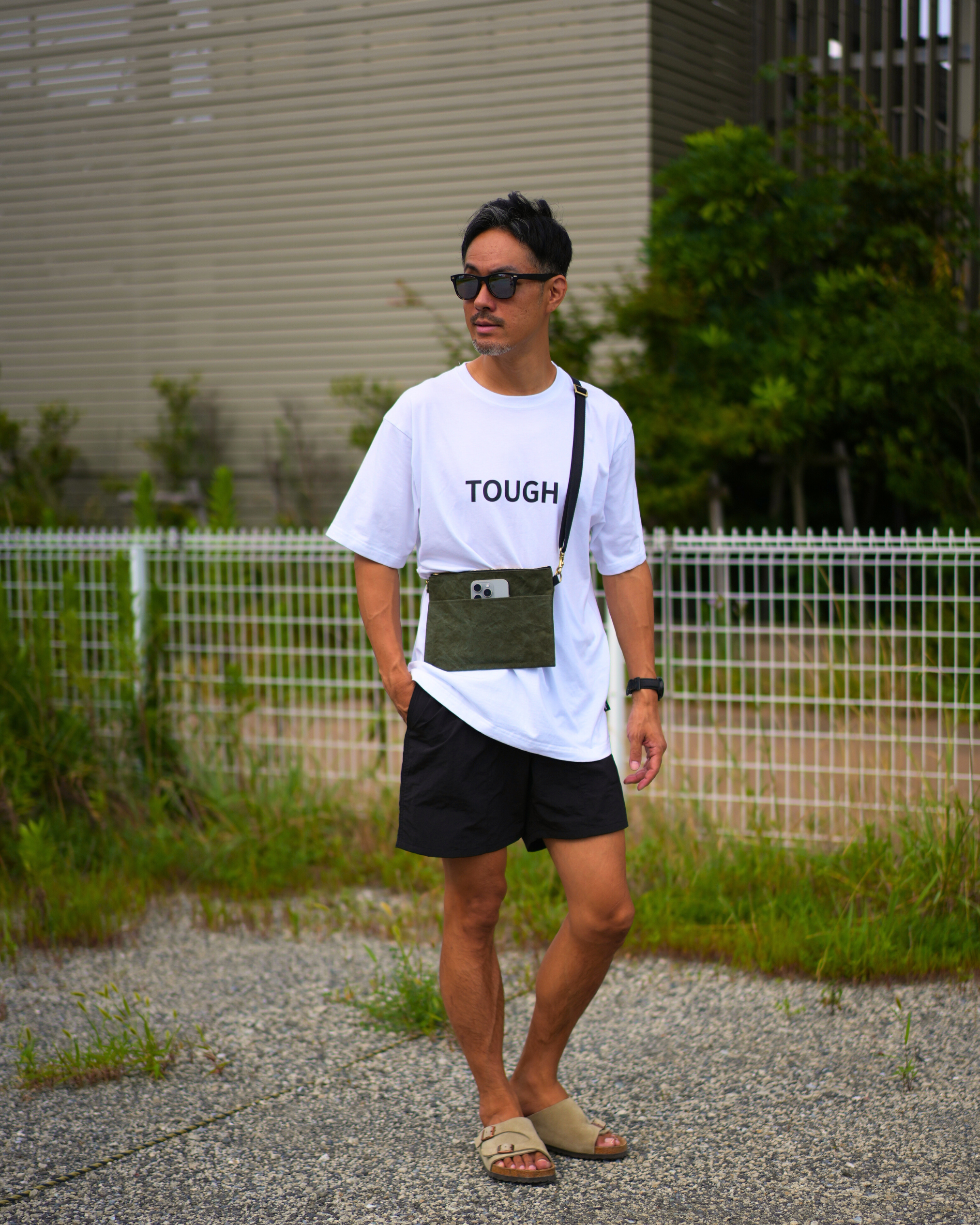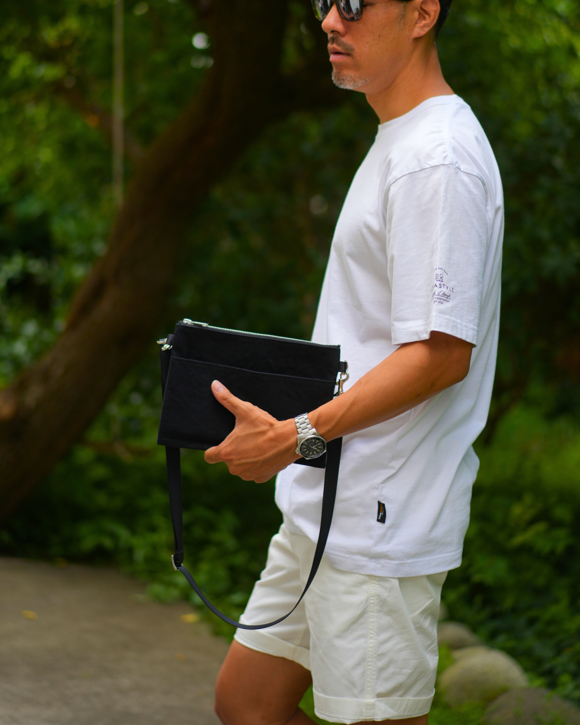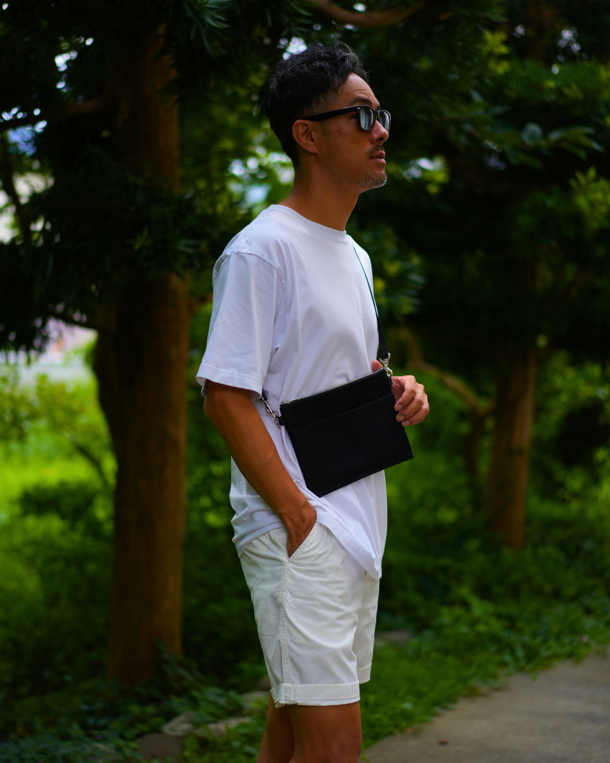 パラフィン加工9号帆布を使用したサコッシュ、MANEUVER(マニューバー)。こちらのコーナーでは、相性抜群の夏コーデをご紹介させて頂きます。