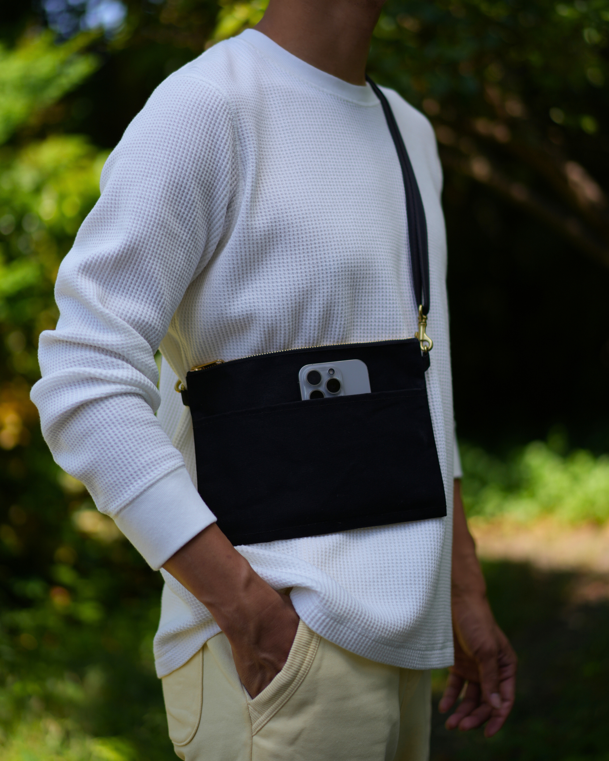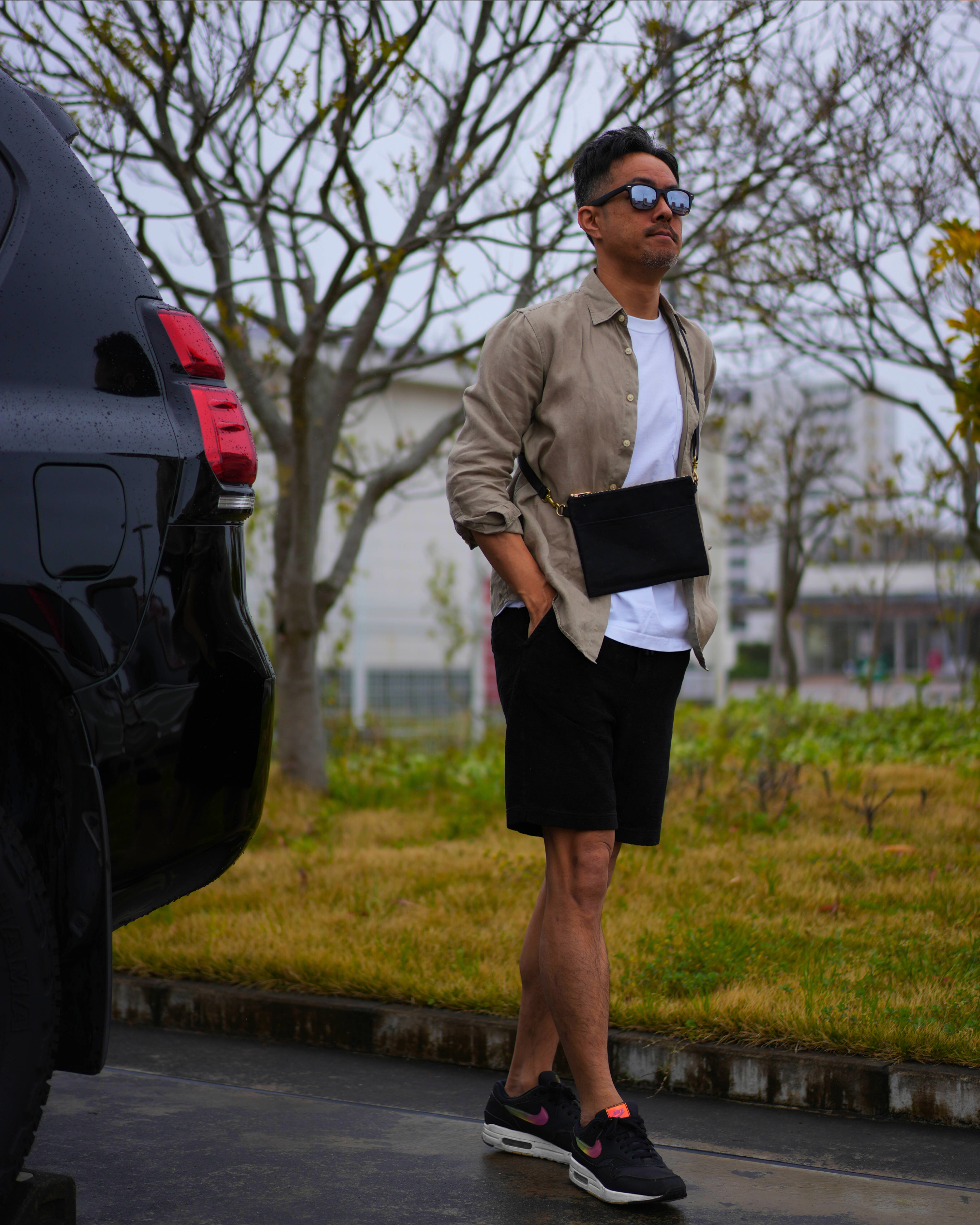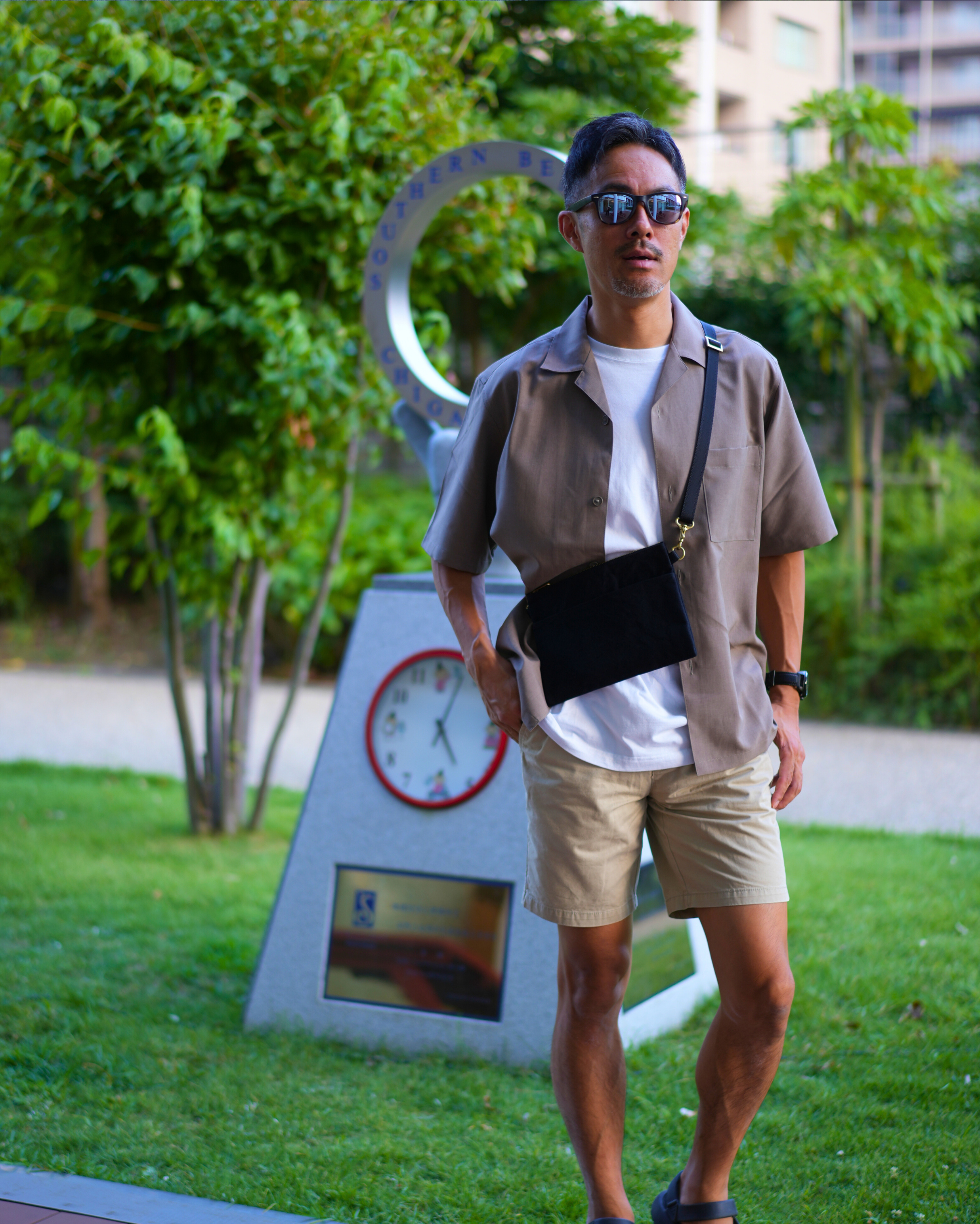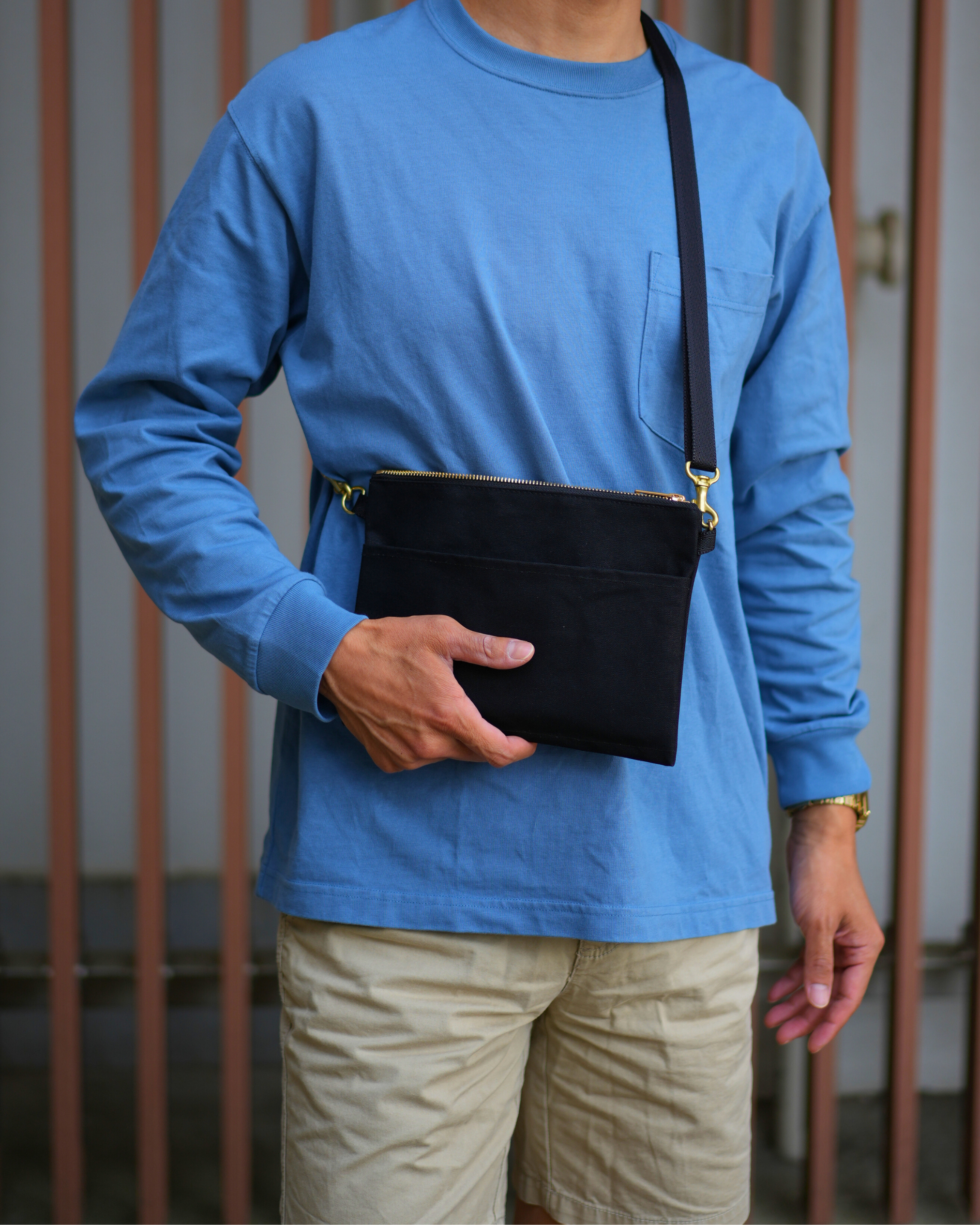 パラフィン加工9号帆布を使用したサコッシュ、MANEUVER(マニューバー)。こちらのコーナーでは、相性抜群の夏コーデをご紹介させて頂きます。