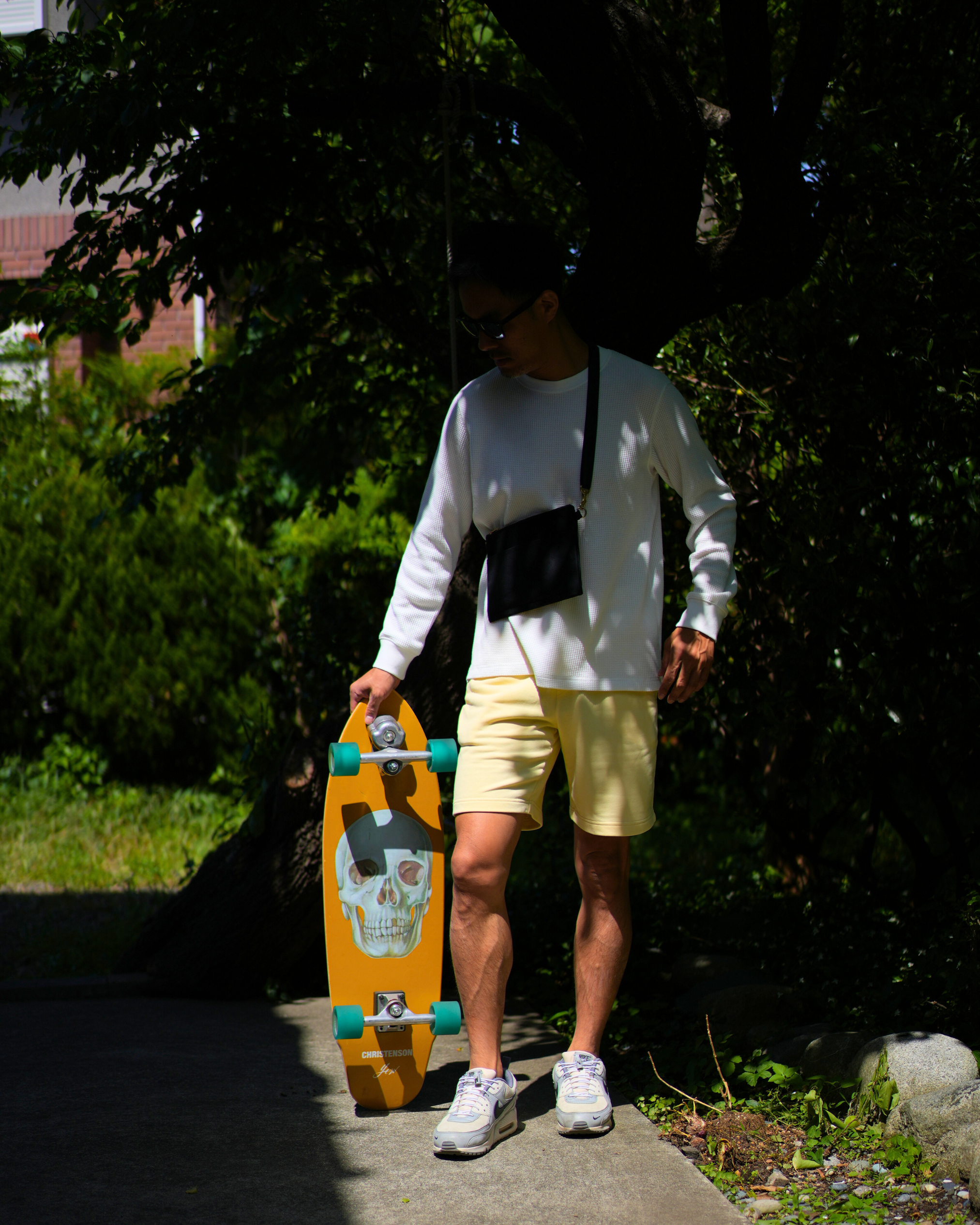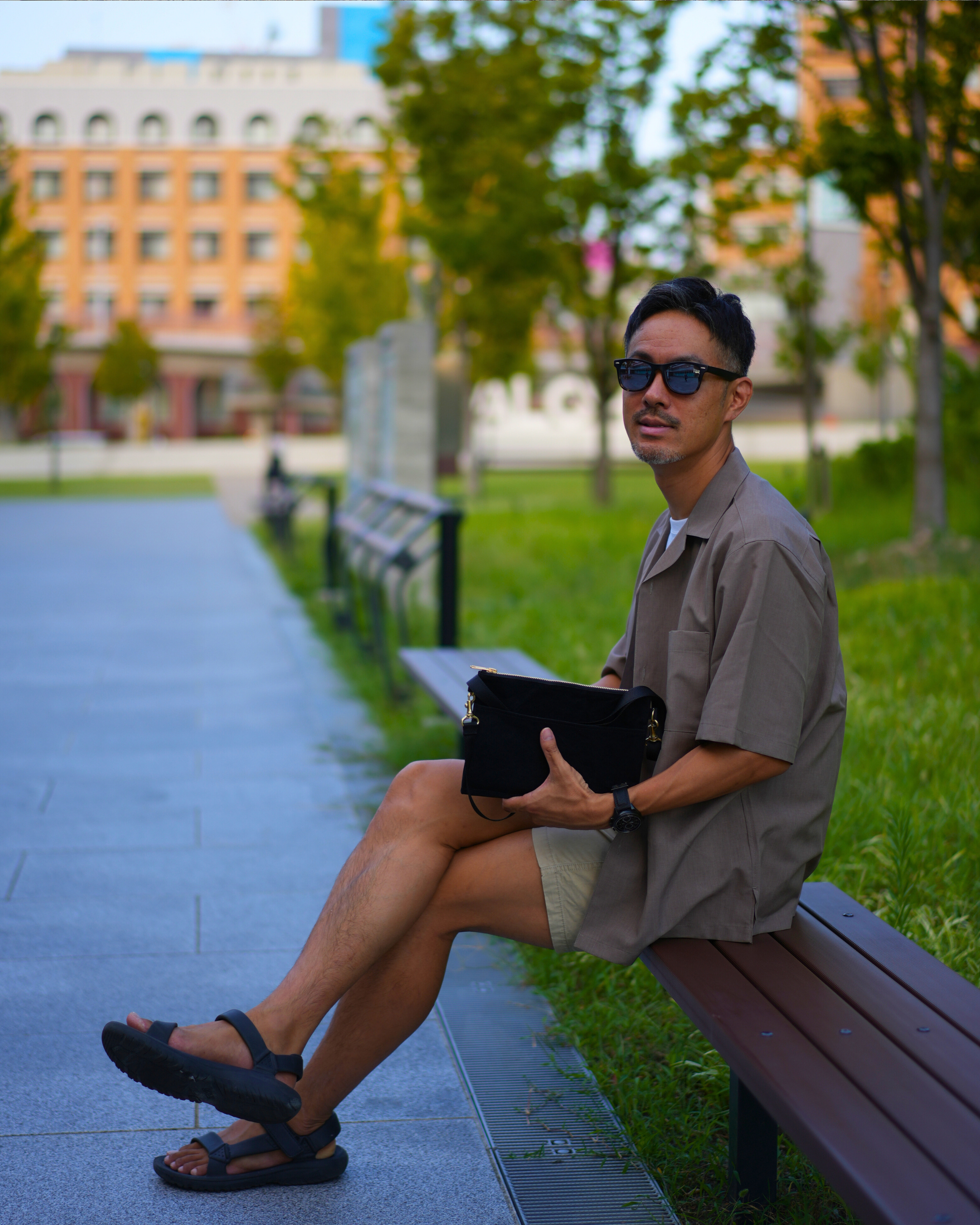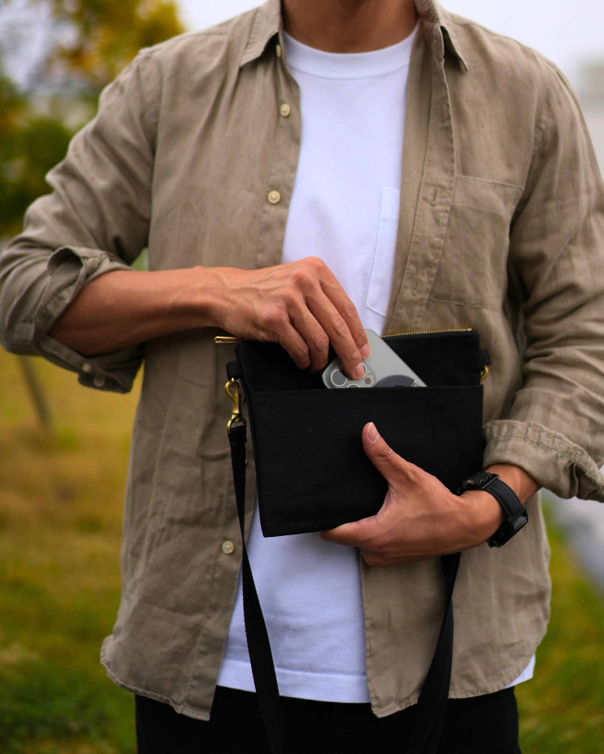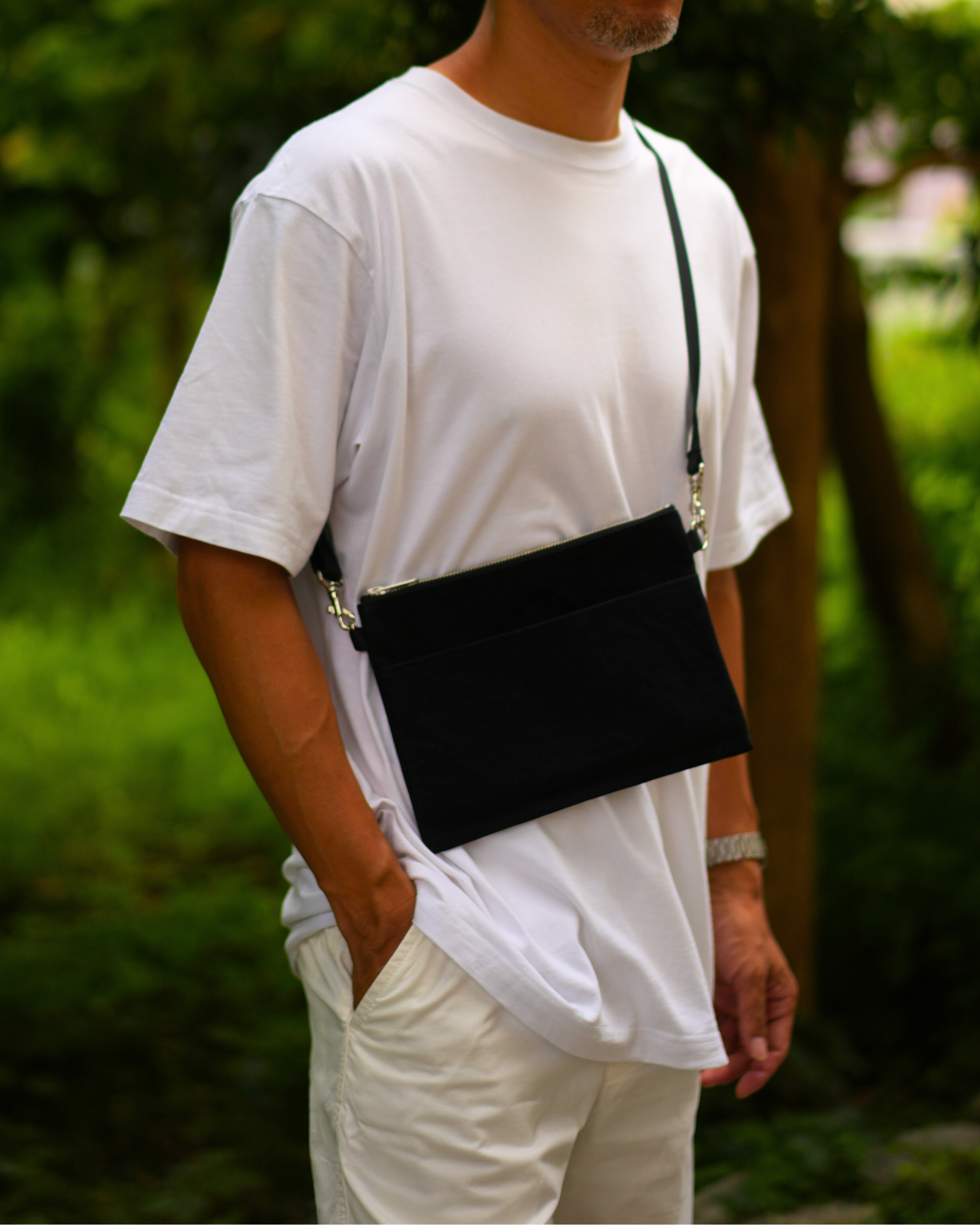 パラフィン加工9号帆布を使用したサコッシュ、MANEUVER(マニューバー)。こちらのコーナーでは、相性抜群の夏コーデをご紹介させて頂きます。