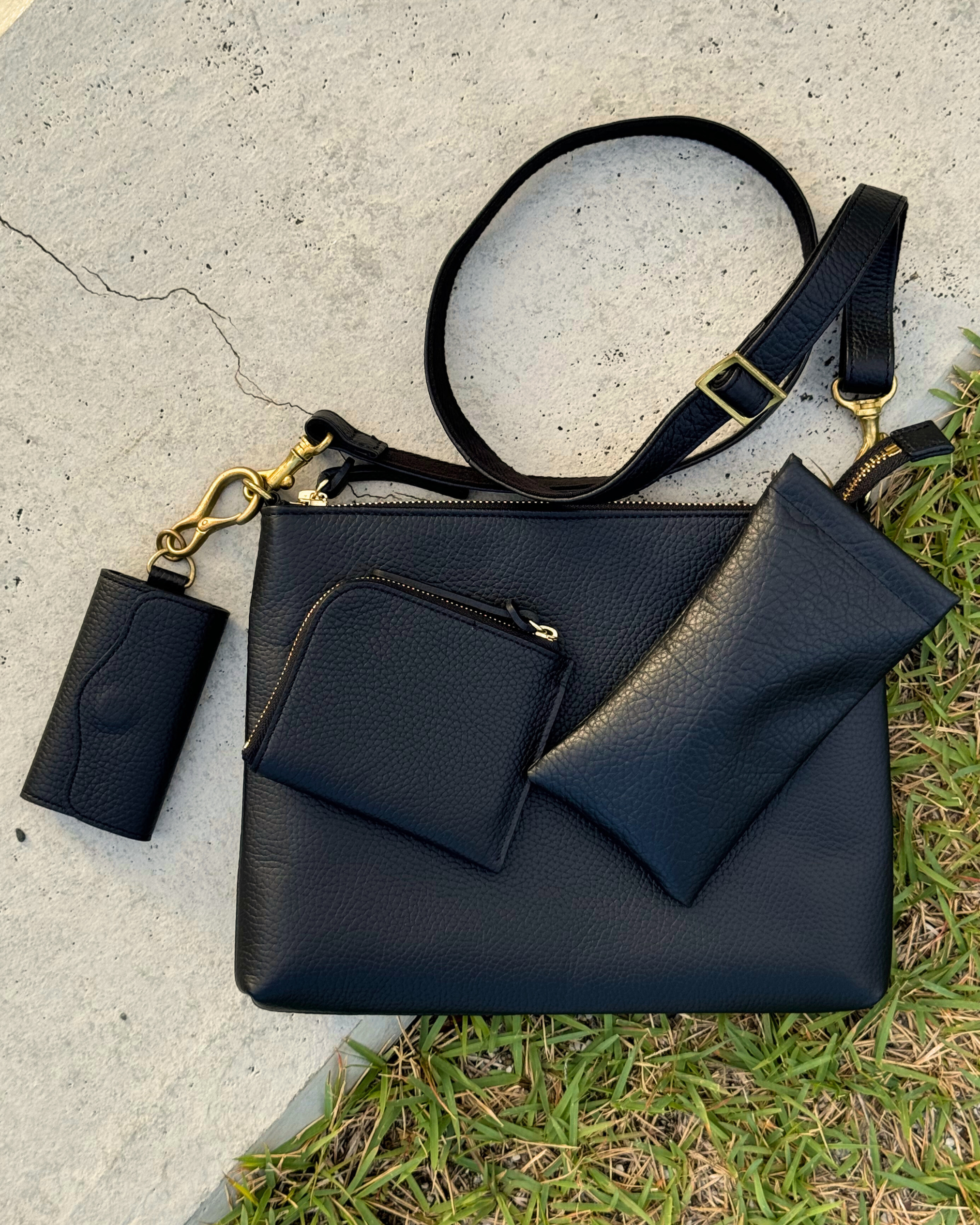 FACE 姫路レザーサコッシュ(ブラック×ゴールド)